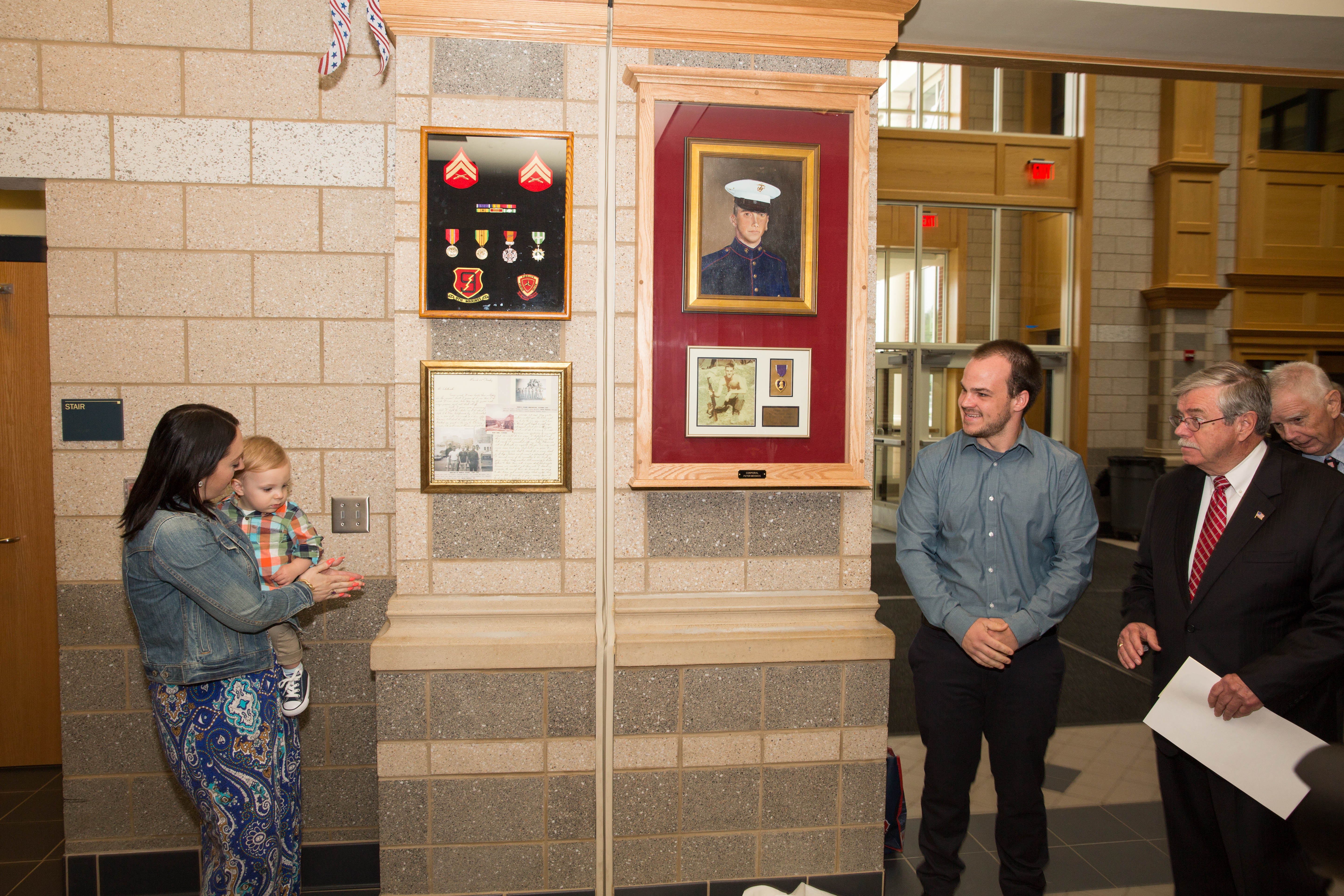 Claire Kirkcaldy and Bill Smith, curators of the Spirit Collection, organized a Display Dedication for Peter Moskos’s Purple Heart. Peter, the only person from East Bridgewater to die during the Vietnam War, left a lasting impression on many East Bridgewater friends and family. The dedication was held in East Bridgewater Jr/Sr High School after the town’s regular Memorial Day ceremonies.